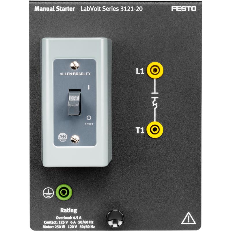 The Manual Starter consists of a single-phase circuit breaker with thermal overload protection.