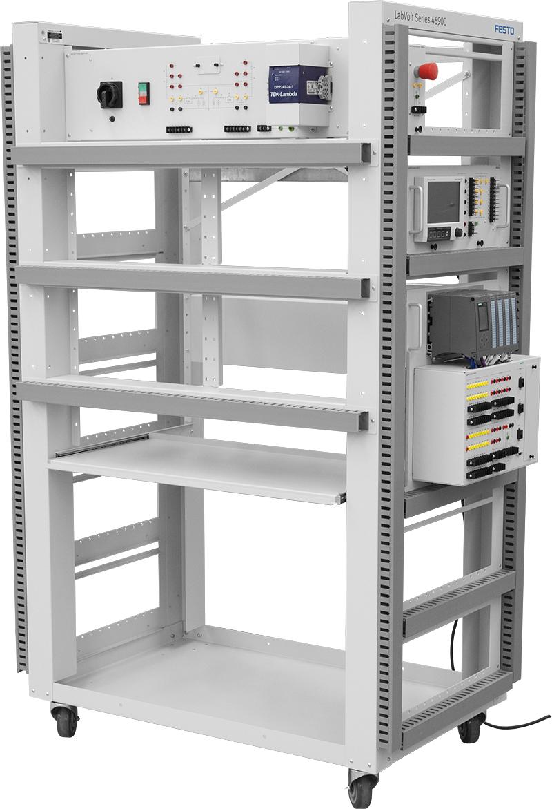 Like the Process Workstation, the Instrumentation Workstation is a double-sided mobile workstation. Two groups of students can work on the system at the same time, one group on each side.