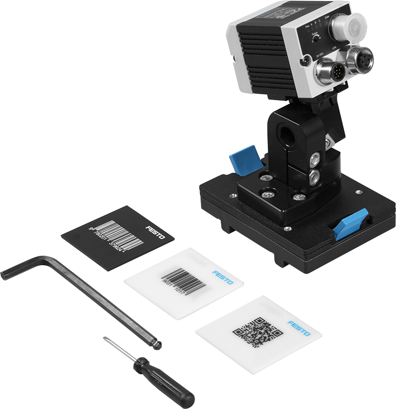 - Scope of delivery: Code reader mounted on Quick-Fix® system, necessary codes mounted on plates compatible with Slide unit (572740)
